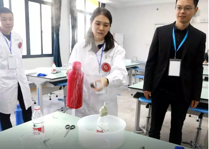 決賽由實驗基礎(chǔ)知識、實驗操作和創(chuàng)新實驗設(shè)計三部分組成,主要考查小學(xué)科學(xué)教師所必須具備的基本實驗操作技能、小學(xué)科學(xué)所涉及的實驗與實驗教學(xué)的基礎(chǔ)知識,以及創(chuàng)新意識、實驗設(shè)計和實踐動手能力等。個人封閉比賽包括實驗基礎(chǔ)筆試以及實驗操作比賽。實驗操作包括:做一個一分鐘擺動五十次的擺、測量并計算橡皮的密度、做一個簡易噴泉的科學(xué)實驗。創(chuàng)新實驗為視頻評比并擇優(yōu)現(xiàn)場展示,部分教師進行了創(chuàng)新實驗設(shè)計現(xiàn)場展示。